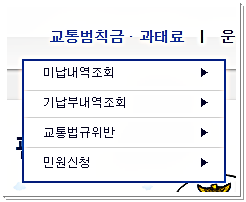 사이트에 접속을 하였다면 본인인증 로그인후에 교통범칙금/과태료 메뉴로 이동하면 최근 5년 동안의 범칙금 및 과태료 부분이 모두 확인이 되기 때문에 본인도 모르게 납부가 되지 않았던 적이 있는 경우라면 확인할 수 있습니다.